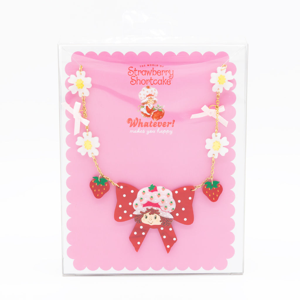 Strawberry Shortcake Whatever! Makes You Happy Berry Bow Acrylic Necklace