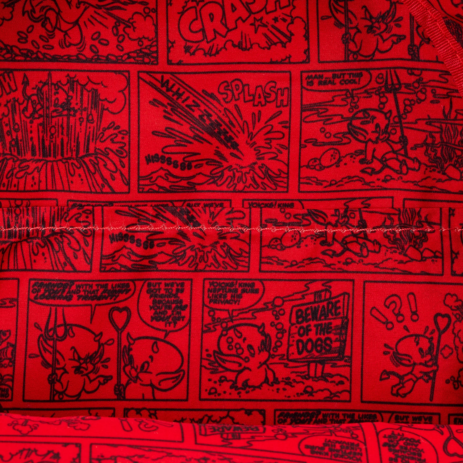 This mini backpack is inspired by Hot Stuff, the Little Devil from Casper the Friendly Ghost. He takes shape on the front of the bag with frosted transparent PVC and debossed details. You'll find a pitchfork charm as the zipper pull on the front pocket. Embroidered flames are on the side pockets. More flames appear on the straps, and you can find a heart with devil horns and a tail on the back that says "Hot Stuff."