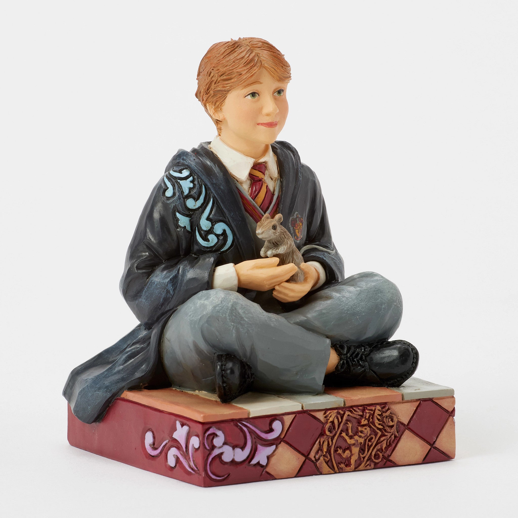 This charming Jim Shore effigy features Ron Weasley sitting on the floor in his Gryffindor robes, holding Scabbers the rat in his hands. With intricate folk art details and warm colors, the piece captures Ron's endearing personality and loyalty.
