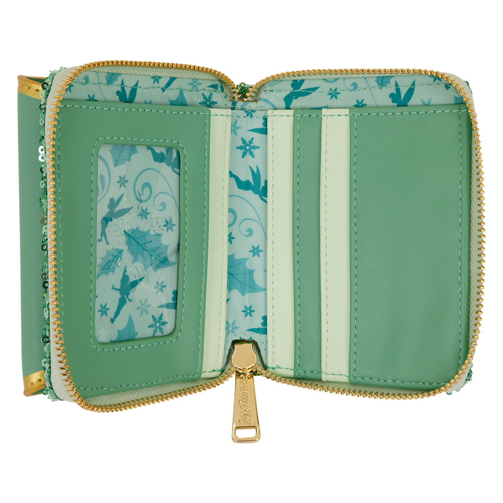 Peter Pan Tinker Bell Holiday Sequin Disney Loungefly Tri-Fold Wallet
